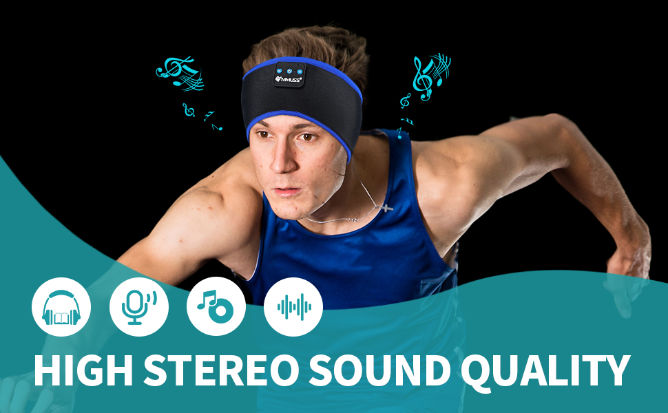 Amazon Com Mmuss Sleep Headphones Wireless Sport Headband With Ultra Thin Hd Stereo Speakers Wireless Music Headphone With Ipx6 Waterproof Microphones For Side Sleeper Running Yoga Meditation Black Electronics